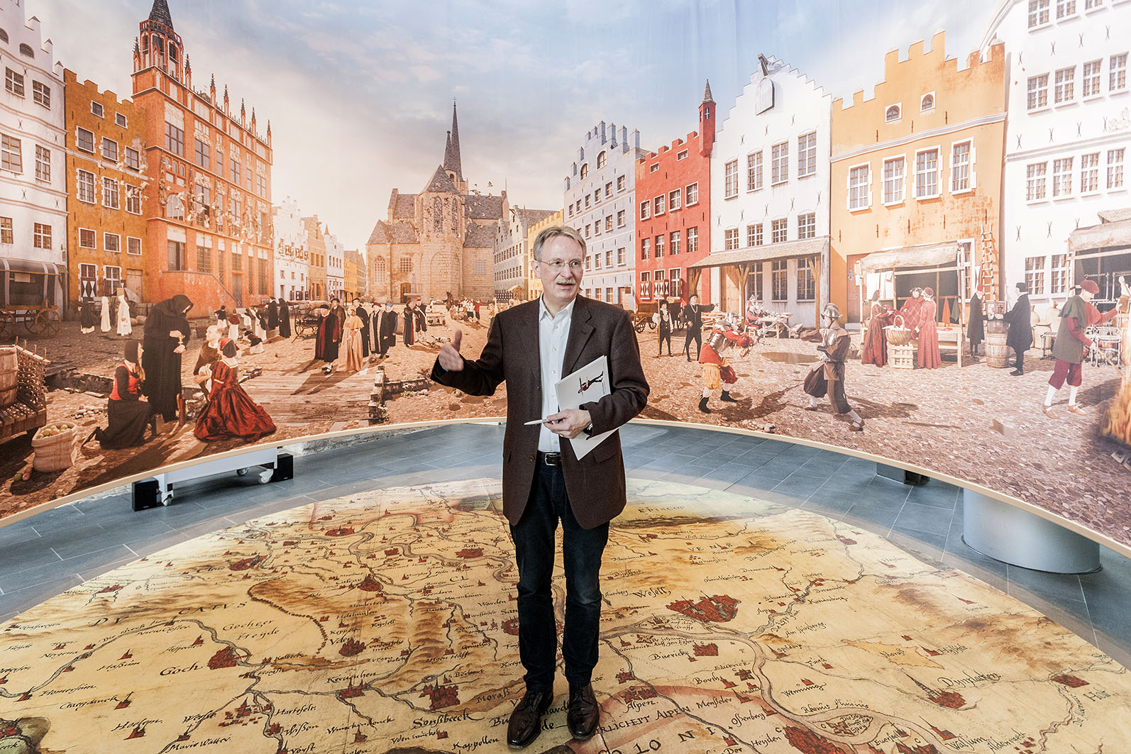 Eine Attraktion der geschichts-/ und geschichtenträchtigen Ausstellung ist ein lebensgroßes Panorama des Großen Marktes zu Wesel aus dem 16. Jahrhundert. BesucherInnen sind eingeladen, sich auf dem „Markt“ zu fotografieren. So ensteht ein Bild, was den Eindruck hinterlässt, man ist um fünf Jahrhunderte in die damalige Großstadt am Niederrhein zurück versetzt. Tatsächlich war Wesel im Jahre 1532 mit 8500 Einwohnern nach Köln mit seinen 40.000 Einwohnern die größte Stadt am Niederrhein.