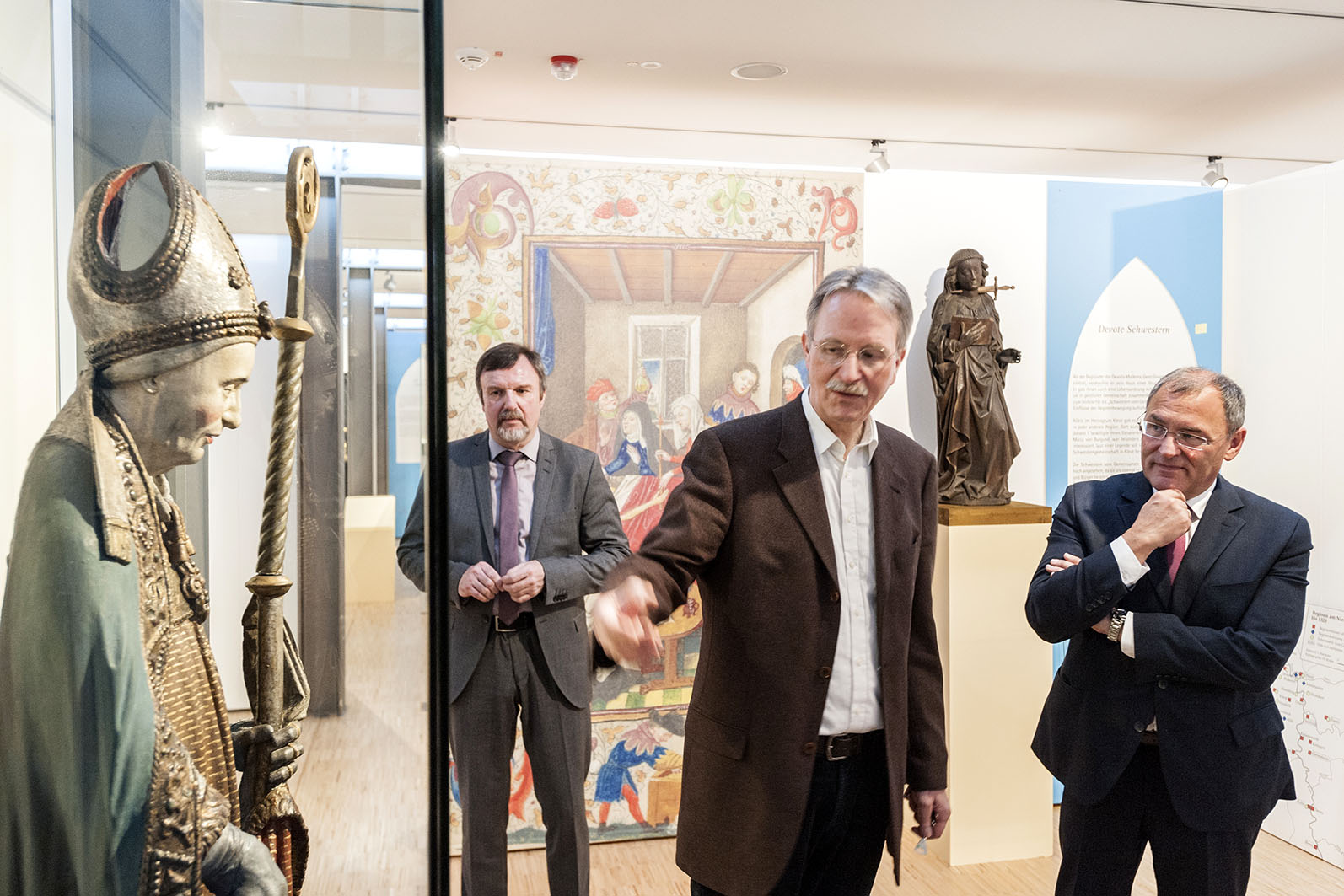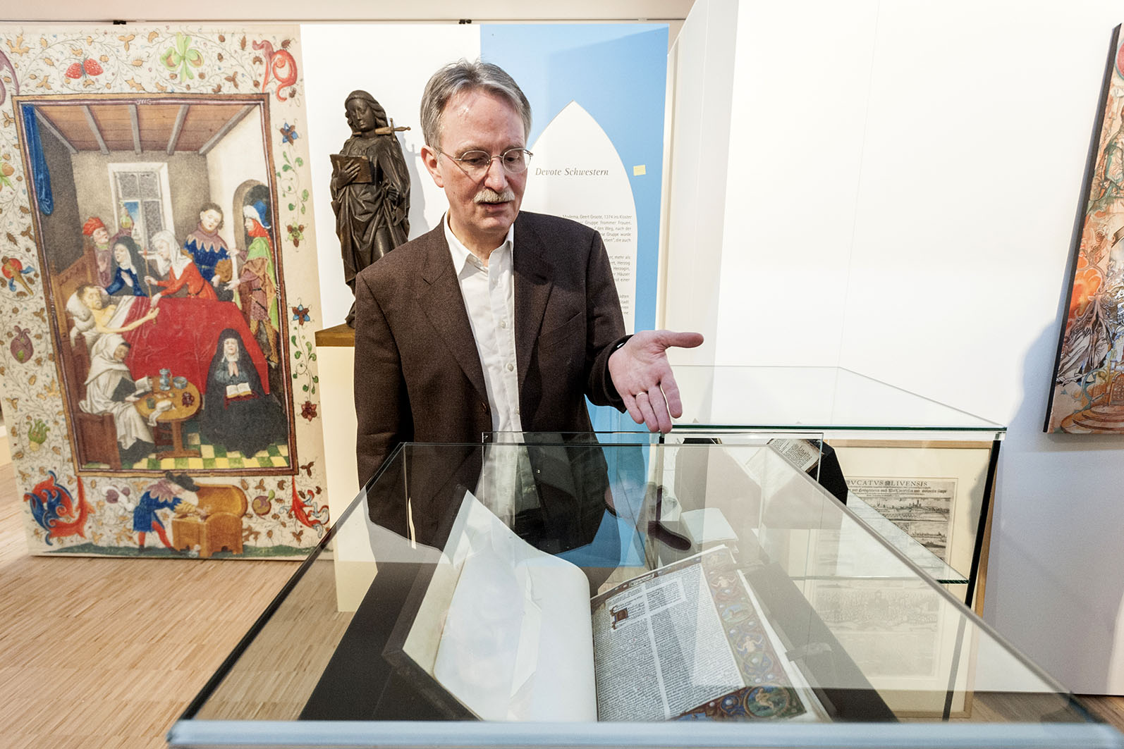 Die Ausstellung verknüpft die Geschichte der Stadt Wesel in Mittelalter und Früher Neuzeit bis in das 19. Jahrhundert mit den übergreifenden Entwicklungen des Niederrheins und der alten Niederlande, zu denen auch Flandern und Brabant zählten. Entlang bedeutender Objekte wird von Biografien und Ereignissen erzählt, die die Konturen eines großen grenzüberschreitenden Kultur- und Wirtschaftsraums aufscheinen lassen. Spätgotische Kunstzentren, vor allem in der reichen Hansestadt Wesel, aber auch in Kalkar und Kleve, führen zu einer beeindruckenden kulturellen Dichte. Wie in einem Brennglas sind viele diese Verbindungen bereits in dem Eingangsbild: dem Panorama des Weseler Großen Marktes im 16. Jahrhundert verdichtet.