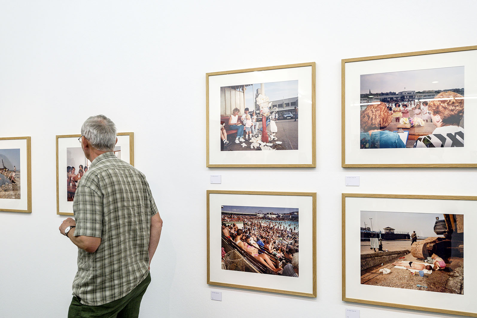 Neben vieler seiner bekannten Farbmotive zeigt die Ausstellung im NRW FORUM auch Parrs frühen Arbeiten aus den 1970er Jahren in kontrastreichem schwarz und weiß. Schon damals beherrschte Parr die Kunst, den Blitz an der Kamera als Aufhelllicht für die bildwichtigen Teile im Motiv dezent aber wirksam einzusetzen. Heute arbeitet Parr gerne mit einem Ringblitz ums Objektiv.