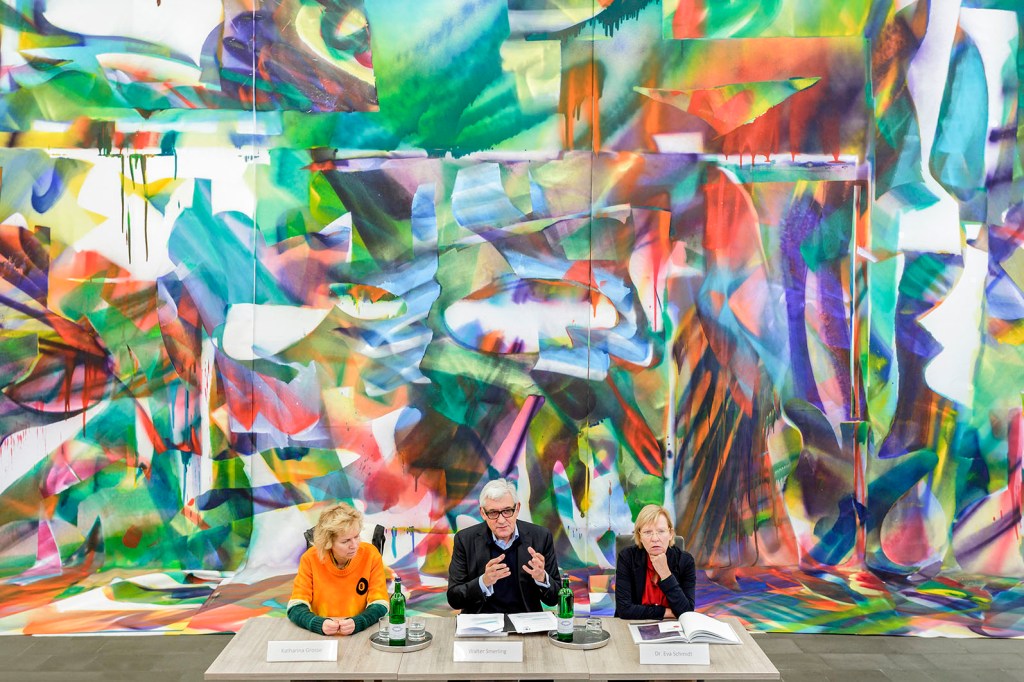 Farbe absolut: Aus der Perspektive der international gefeierten Malerin Katharina Grosse (geb. 1961) sehen wir auf die legendären „Farbraumkörper“ Gotthard Graubners (1930-2013) und umgekehrt. In den 1980er-Jahren hatte Grosse einige Jahre lang die Klasse Graubners an der Düsseldorfer Akademie besucht, wo sie später selbst unterrichtete. Im Zentrum der Ausstellung steht der Dialog der Werke – und damit die Auseinandersetzung mit dem Wesen und den Möglichkeiten der Farbmalerei. Gemeinsamer Ausgangspunkt beider Künstler ist die Überzeugung von der überzeitlichen, existenziellen Kraft der Farbe, die sich unmittelbar auf den Betrachter überträgt und physisch erfahrbar wird. Umso überraschender ist es zu erleben, zu welch unterschiedlichen malerischen Ergebnissen Katharina Grosse und Gotthard Graubner gelangen, mit denen beide ihre jeweilige Zeit künstlerisch prägen.