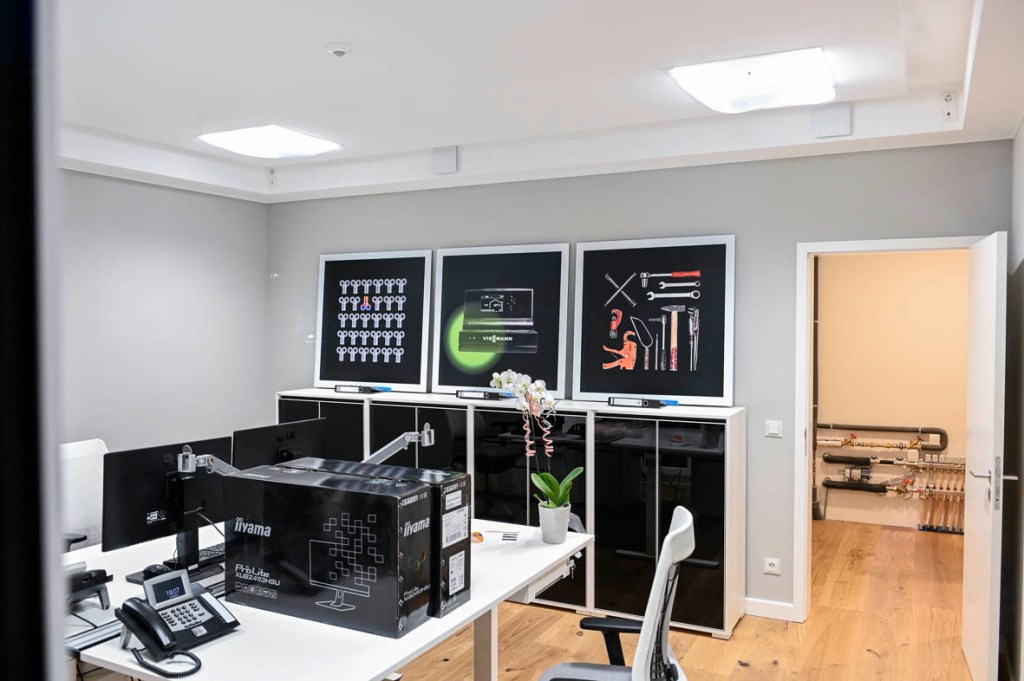 Konzept und Umsetzung für die visuelle Ausstattung eines Bürogebäudes in der SHK-Branche