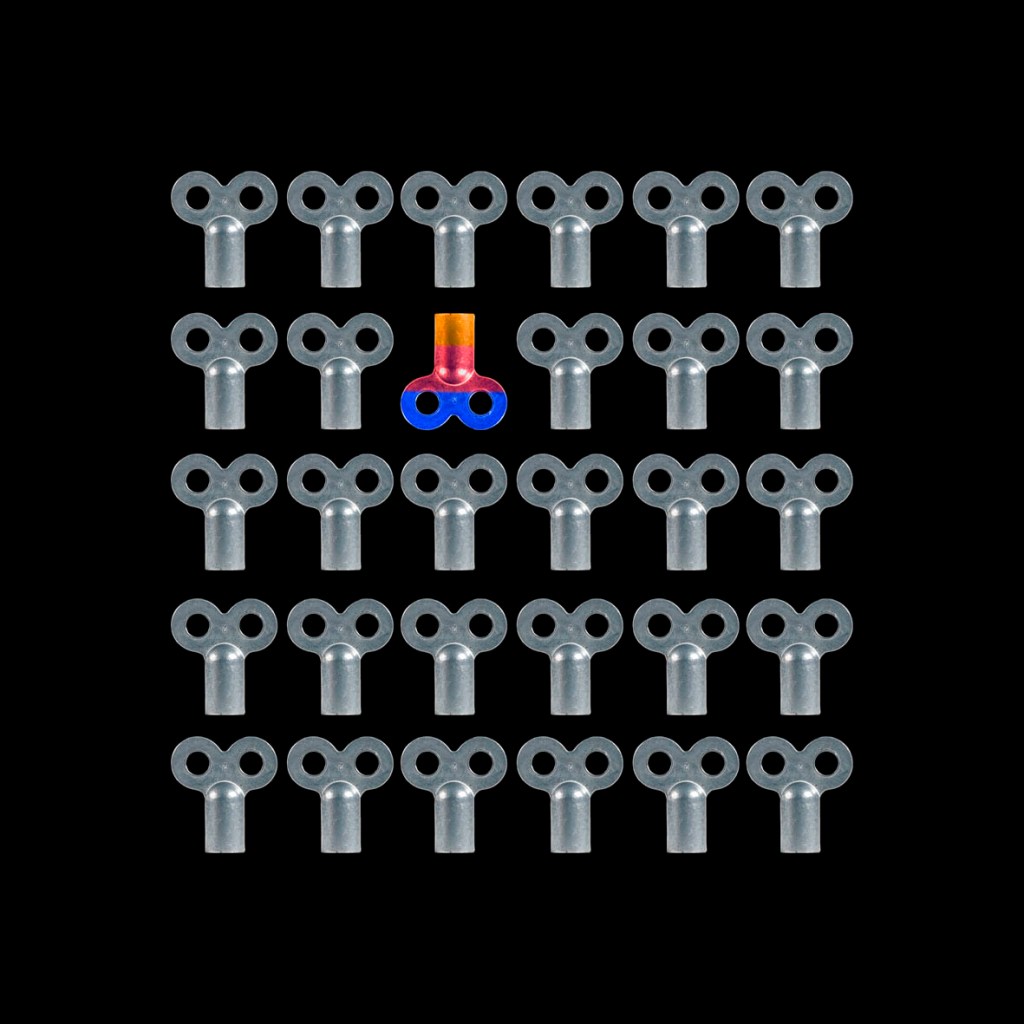 Und so landeten die unterschiedlichsten zum Teil sehr persönlichen Dinge auf der Fotoliste. Ich brauchte nur noch nach objektiver Ästhetik und Attraktion auszusuchen. Um die weniger spektakulären, auch banalen Motive von zum Teil gebrauchten und abgenutzten Werkzeugen für eine exklusive Wandpräsentation zu ästhetisieren, entwarf ich das technische Konzept: eine flächige aber werblich ausgeleuchtete Abbildung, das Objekt als Freisteller und dann auf tief schwarzem Grund mit einem weißen Rand. Und das ganze dann in einem Quadratmeter Größe auf AluDibond mit Profilhängung als Abstandshalter.