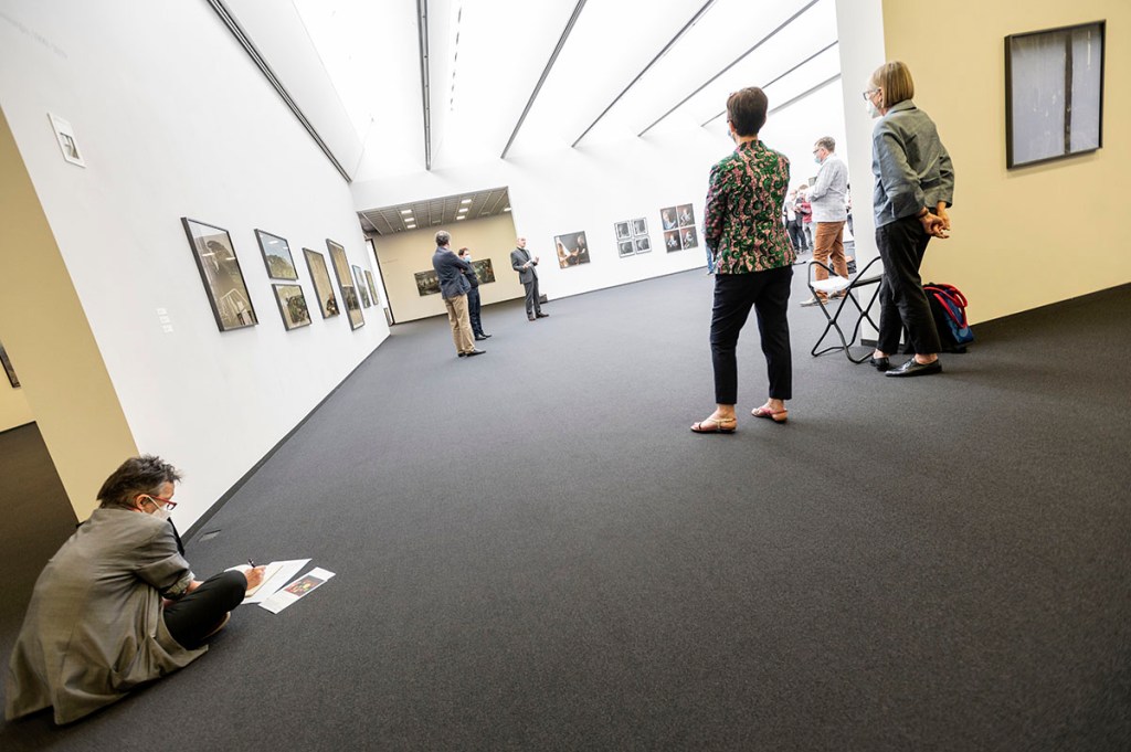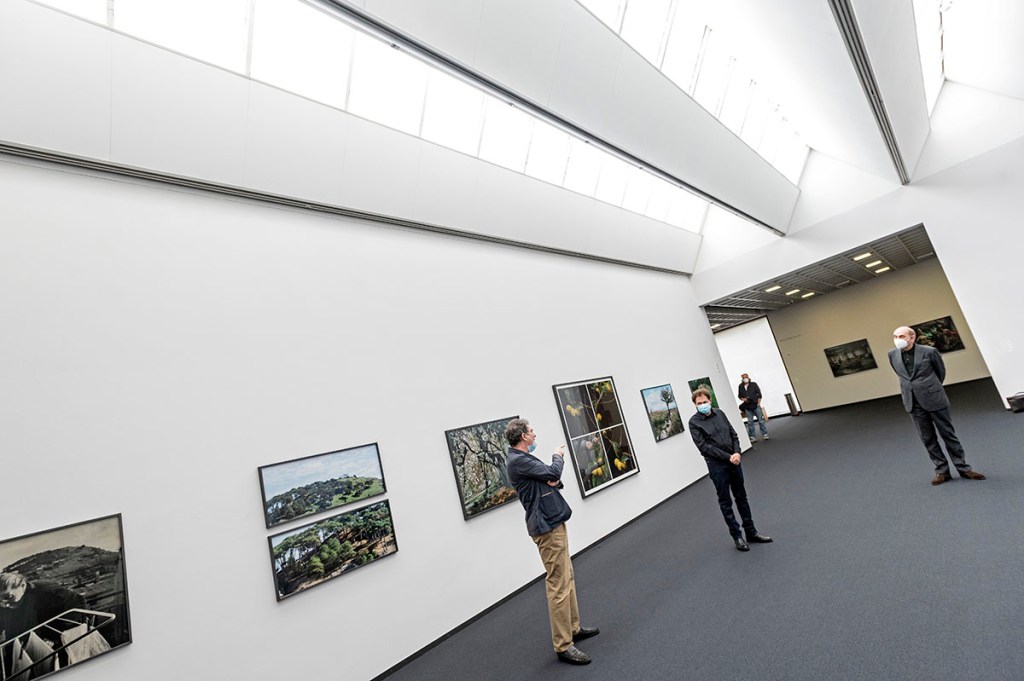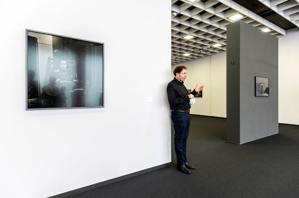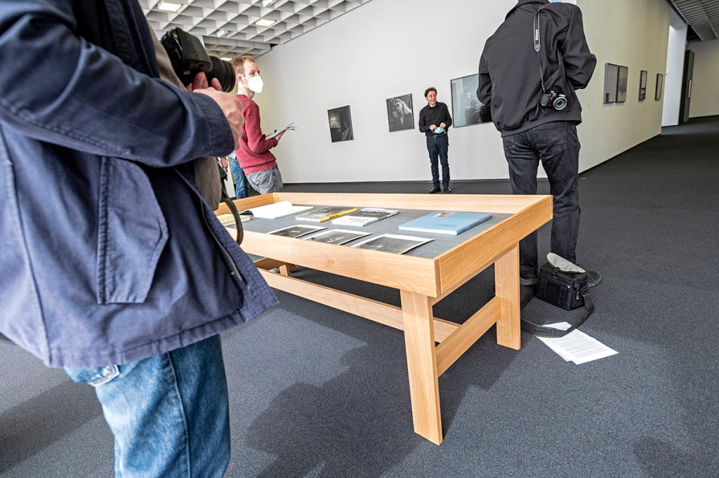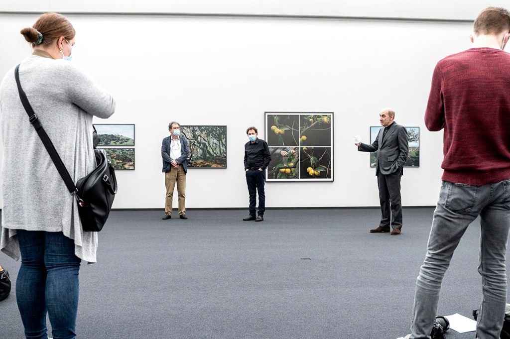 Bei der Vorbesichtigung stellen die beiden den JournalistInnen den Fotogafen und sein Werk vor.
