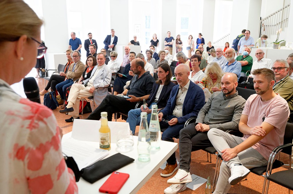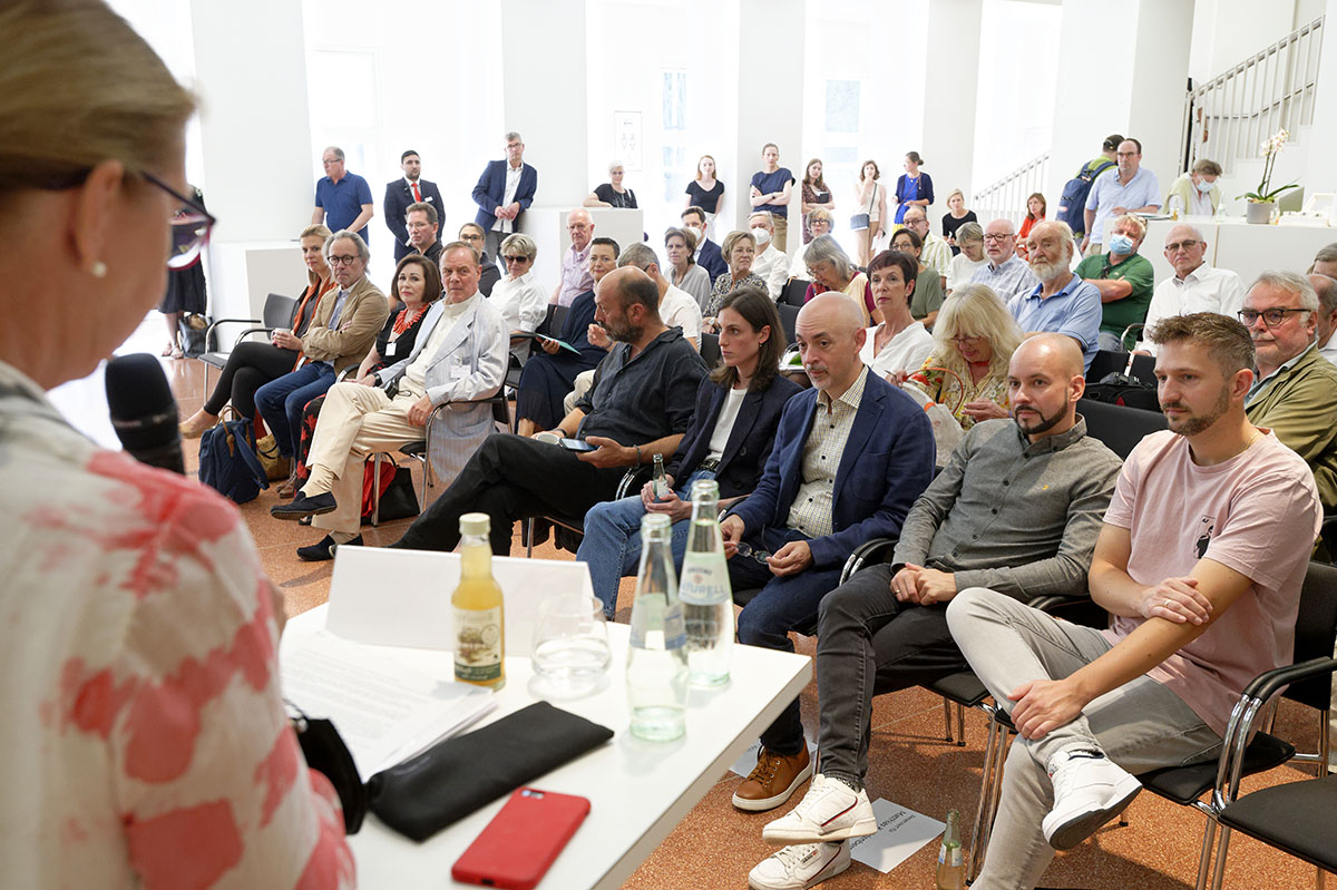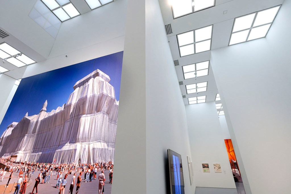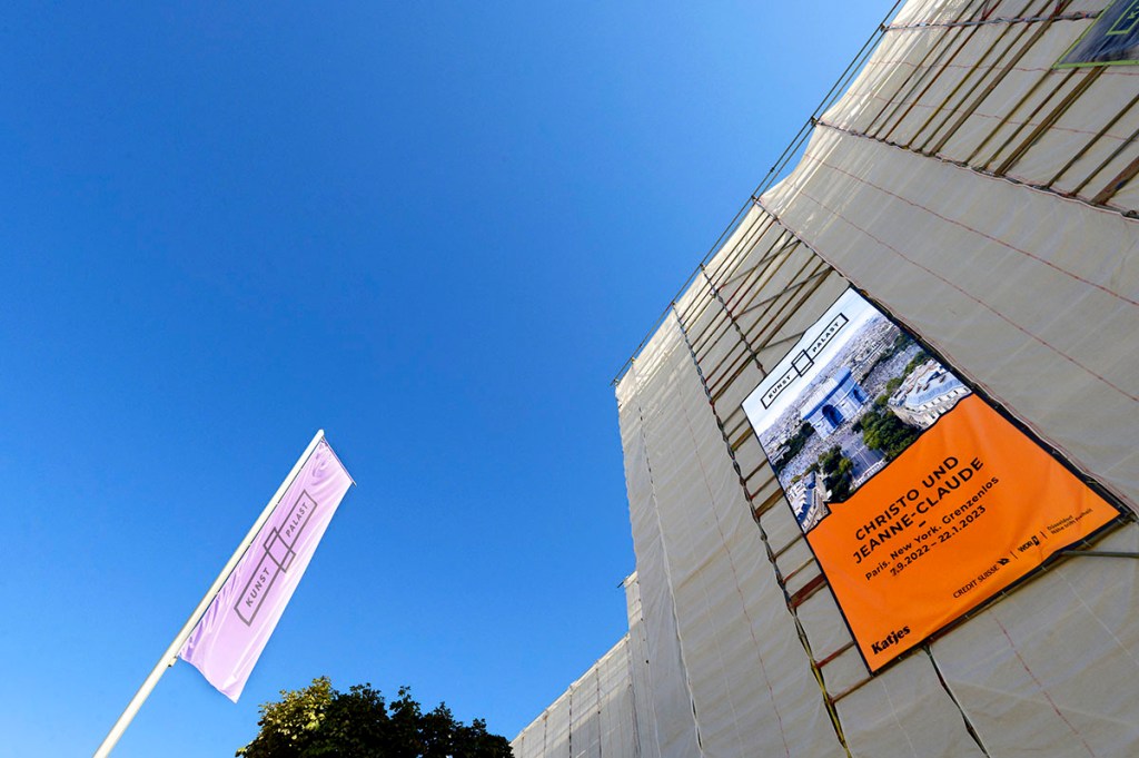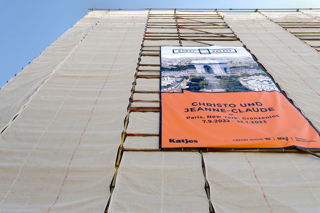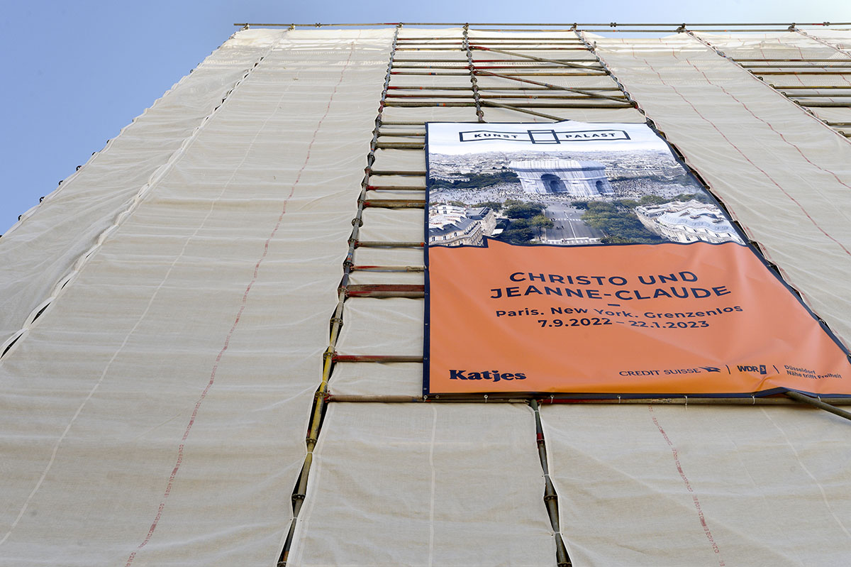Generaldirektor Felix Krämer, der mit seinem gewissenhaften Spezialisten-Team rund siebzig Werke präsentieren kann, lud zur Ausstellungsvorbesichtigung in den KUNSTPALAST nach Düsseldorf ein. Und weil nicht nur KultouristenInnen die spektakulären Verhüllungen des Künstlerehepaares Christo (*1935 †2020) + Jeanne-Claude (*1935 †2009) mögen, sondern auch die Medienschaffenden, war es bei der Pressekonferenz richtig voll. Zunächst glaubte man, das jüngste Projekt der beiden verpasst zu haben, als man auf den verhüllten KUNSTPALAST zuging. Schnell wurde aber klar, dass es sich um Schutz-, Lärm- und Emissionsschutz-Planen der Baustelle handelt, zu der der KUNSTPALAST unlängst durch großzügige Finanzierung zurzeit erkoren ist.