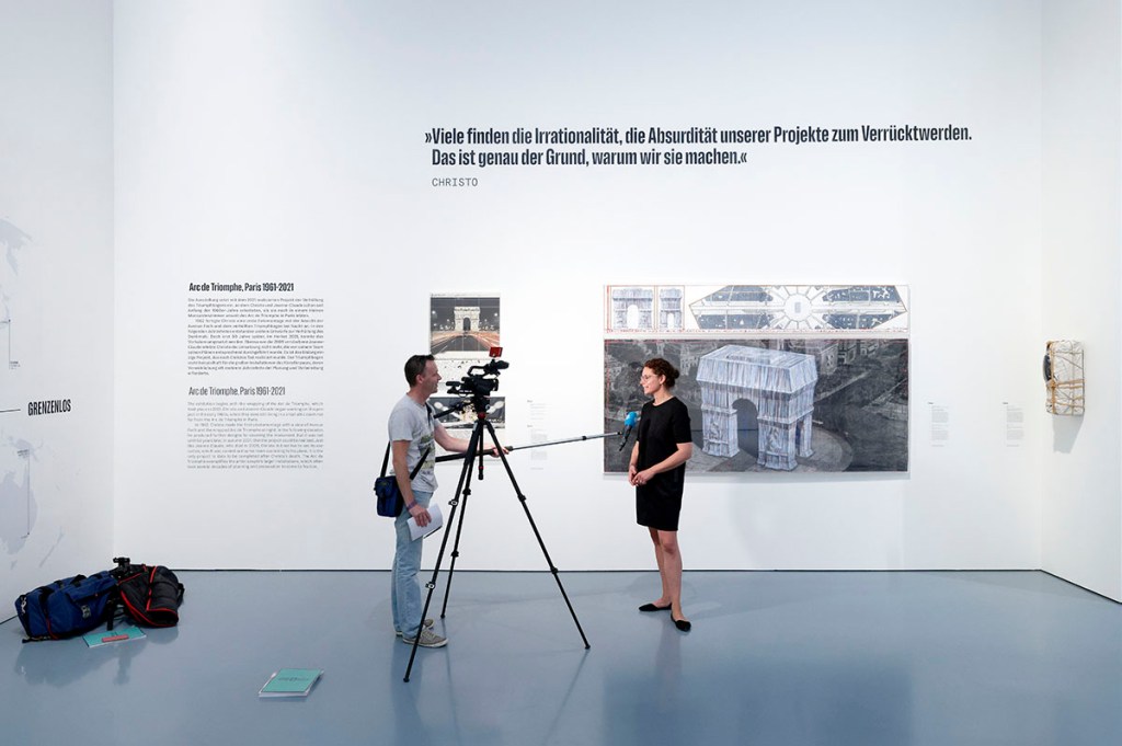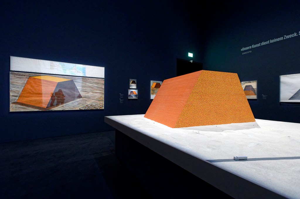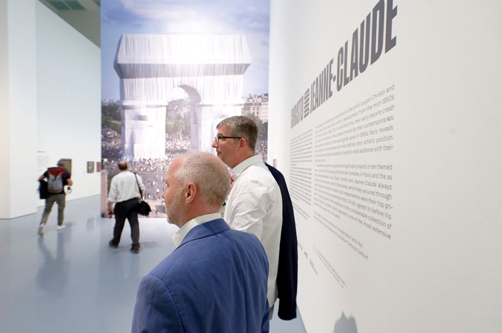 Das Sammlerehepaar Ingrid und Thomas Jochheim haben großzügig eine Vielzahl aus ihrer Sammlung der Projektarbeiten von Christo und Jeanne-Claude dem Museum zur Verfügung gestellt. Auf vier Häuser verteilt erstreckt sich ihre beachtliche Kunstsammlung in Recklinghausen. Mitte der 90er Jahre lernten sie Christo und Jeanne-Claude kennen und liebten und schätzten fortan ihre Aktivitäten. Für die Zeit der Ausstellungen in Düsseldorf und in Schloss Gottorf, Schleswig (vom 17. März bis zum 8. Oktober 2023) hat der Fotograf Wolfgang Volz dem Sammlerehepaar themengerechte Fotografien ersatzweise an die Wände gehängt, an denen jetzt die Originale fehlen. Ihre Sammlung wollen die beiden „aber jetzt häufiger im Museum besuchen“, wie Ingrid Jochheim erklärt.