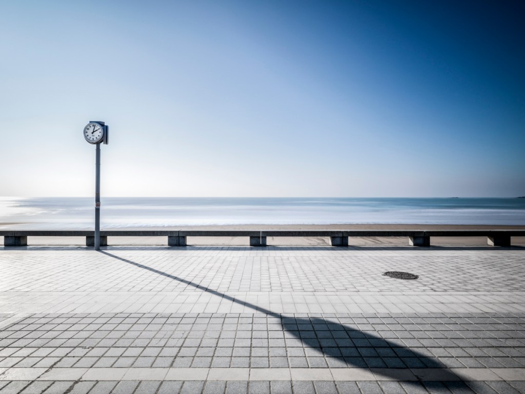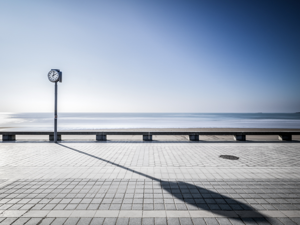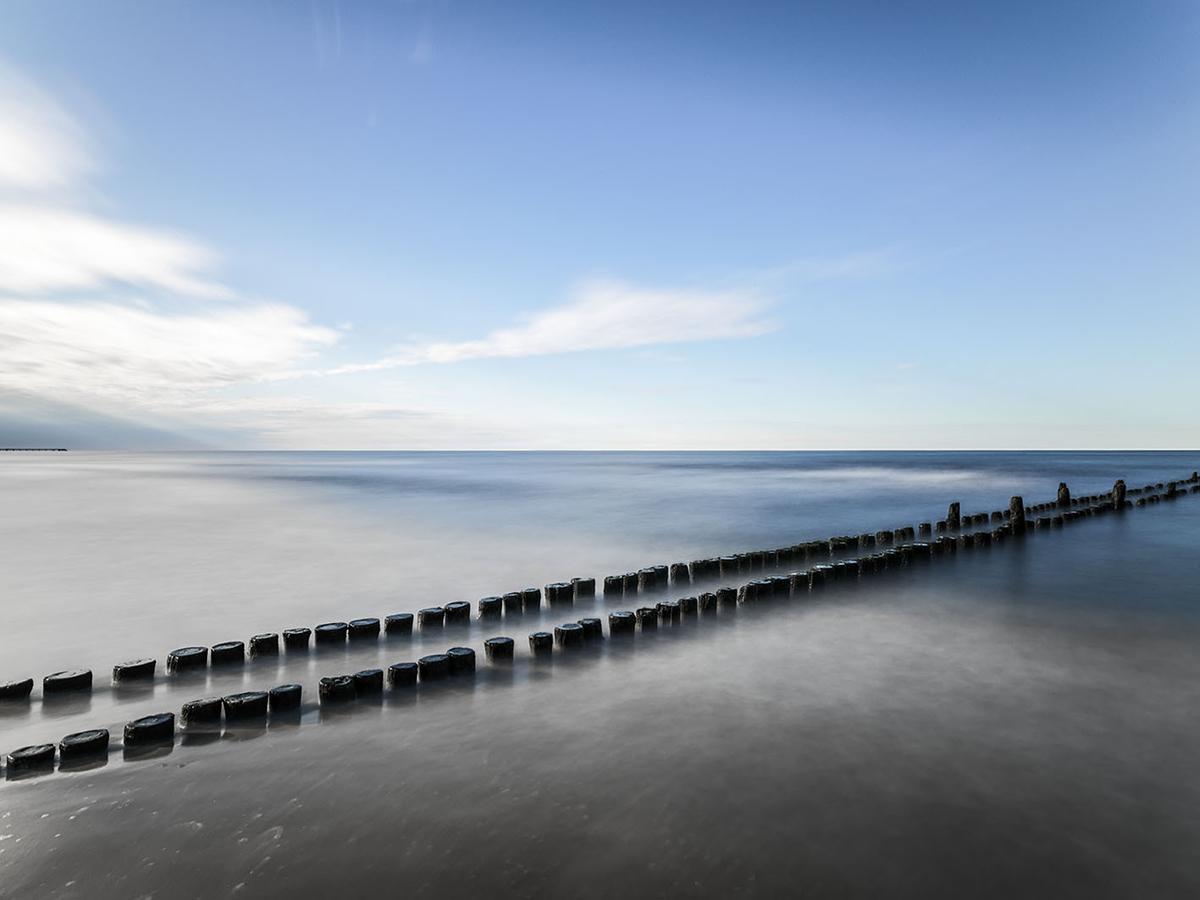 Heute weiß ich, dass sich Mondrian von den Seelandschaften seiner Heimat hat inspirieren lassen, von dem Licht, das hinter den Dünen im Osten begann und mit brennender Sonne abends im Meer verging. Der Faszination eines solchen Naturerlebnisses konnten sich Generationen von Malern offensichtlich bis heute nicht entziehen. Dort wo natürliche Urgewalt in Form scheinbar endloser Wassermassen und Spuren menschlicher Zivilisation aufeinandertreffen, entsteht eine ganz besondere Landschaft: eine Art Zwischenraum an der Nahtstelle von Wasser und Land. Auch mich als Fotograf hat dieser Zwischenraum immer besonders angezogen. In zahllosen Motiven reduziere ich diese romantische Landschaft auf zwei wesentliche Bestandteile: auf die gewaltige Natur in Form eines Himmel und Wasser teilenden Horizonts und dagegen auf vertikale Formen, die eindeutig menschliche Spuren dokumentieren. Eine Art der Reduktion, wie Mondrian sie belegen wollte? Diesen vermessenen Zusammenhang dürfen andere bewerten.