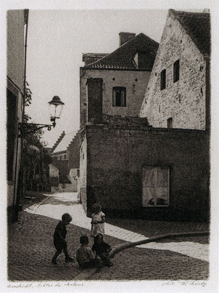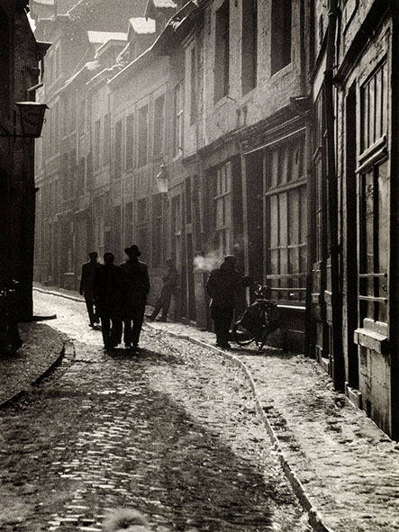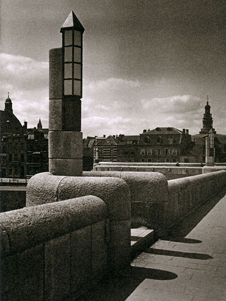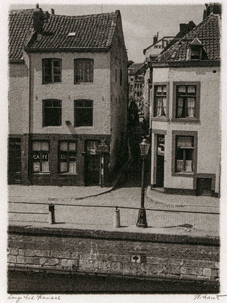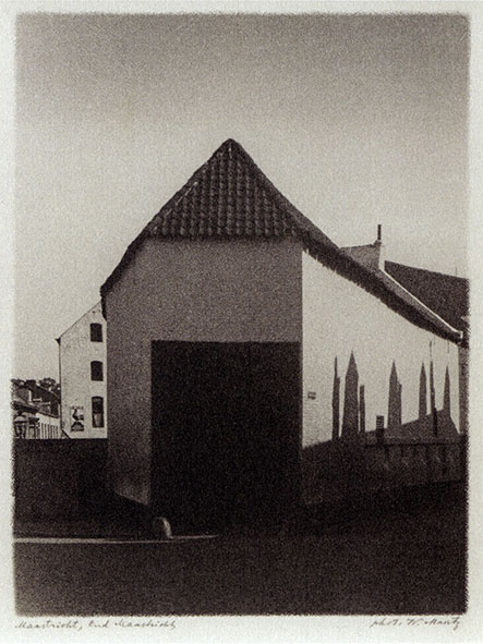 Während seiner Laufbahn arbeitete Werner Mantz fast ausschließlich im Auftrag. Doch es entstanden auch freie Arbeiten. Es sind zumeist Fotos der Maastrichter Altstadt; die ersten Aufnahmen datieren aus dem Jahr 1932. Er lichtete die alten Wallanlagen ab, Stadttore, Gassen, Kirchen, Parks unddas alte Rathaus. In der Nachkriegszeit machte er sein bekanntes Gegenlichtfoto von der Stokstraat. Obwohl dieses Foto deutlich seine Präzision und sein Gefühl für die Gestaltung erkennen lassen, unterscheiden sich die Maastrichter Stadtaufnahmen durch impressionistisch-idealisierenden Charakter von den Auftragsarbeiten. Bei der Herstellung dieser Fotografien arbeitete Mantz zum Teil mit einem Raster – ein Verfahren, das er während seiner Ausbildung in München kennengelernt hatte. Interessant sind die Fotos, die Werner Mantz von der 1932 im Stil des Art déco vollendeten Wilhelminabrücke machte; sie existiert heute nicht mehr in ihrer urspünglichen Gestalt. Von verschiedenen Standpunkten aus stellte er die charakteristischen Elemente der Brücke heraus: die Treppen in der Mitte, die Landungsplätze, den Leitdamm, das Brückenwärterhaus und die auffallenden Lampen, die wie Wächter auf der Brüstung aus Naturstein stehen. (Übersetzung des englischsprachigen Katalogs der Ausstellung)