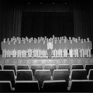 Den schweren Handblitz so hoch wie möglich in Richtung Bühne so gehalten, dass auf die vorderen Sitzreihen im Format des Motivs nicht allzu viel Licht kam – und dann die positionierten fünfzig Köpfe im Blick, mit dem hohen Anspruch, dass sich jeder auf dem Foto hinterher wiedererkennt: akut Schweißausbrüche und schlaflose Nacht bis zur Entwicklung des Rollfilms mit acht Belichtungen am folgenden Tag. Mehr Belichtungen waren nicht drin, weil die Herren vom Chor während des Shootings ungeduldig wurden.