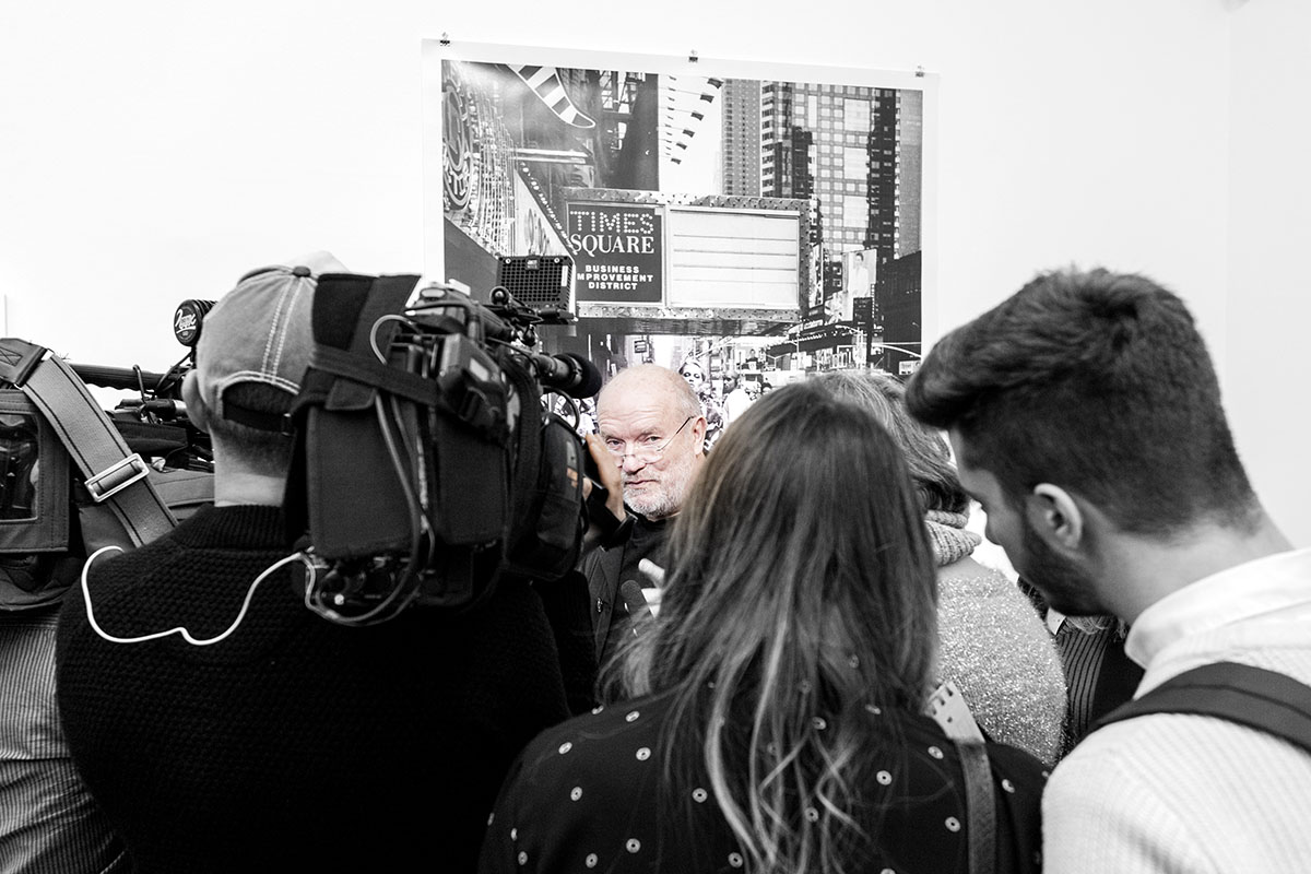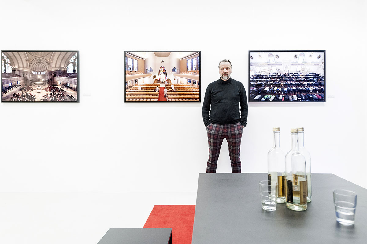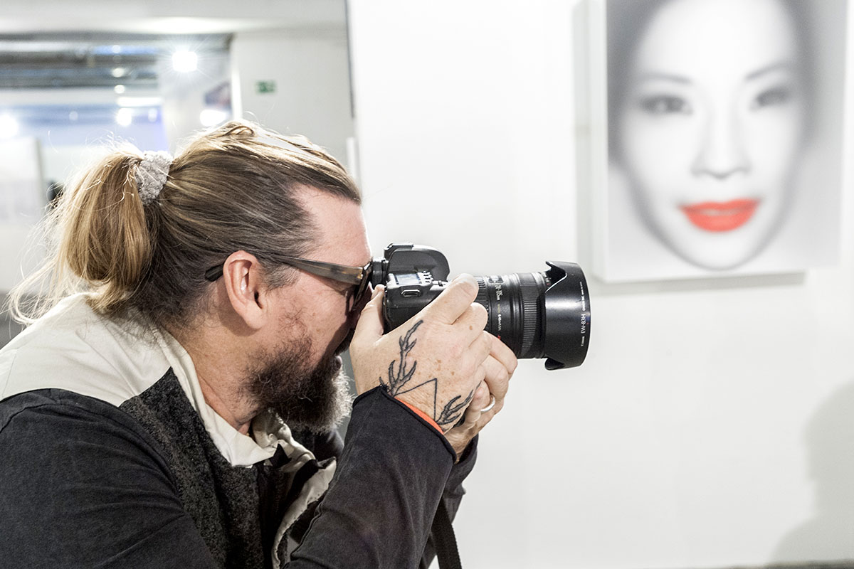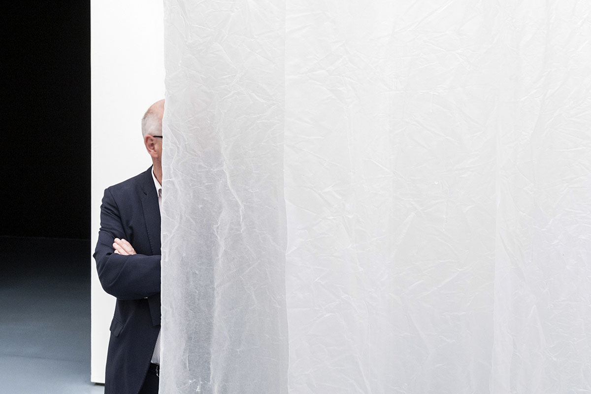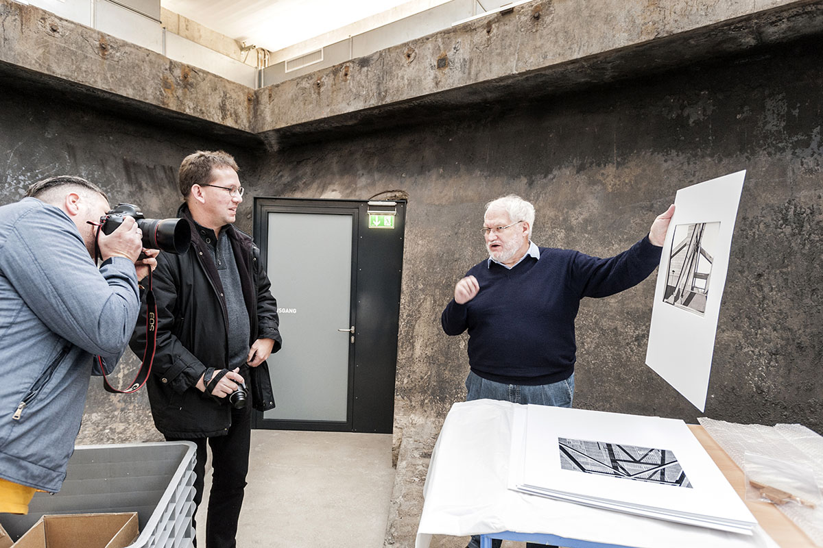 Er sucht eher nach dem Künstler mit seinem Werk für seine Bilder. Der dreidimensionale Raum muss auf die zwei Dimensionen der Fotografie übersetzt werden. Das finale Bild in seinem Kopf entsteht auf diese Weise dann immer erst ganz kurz vor dem fotografischen Prozess.