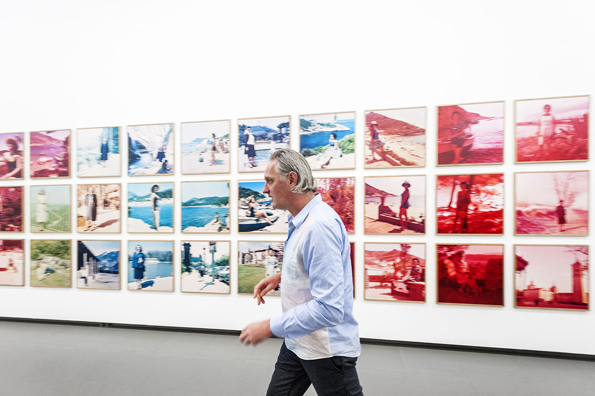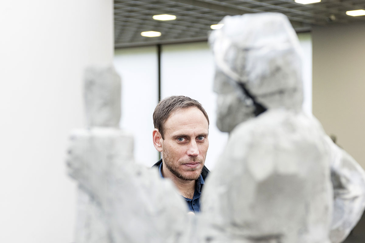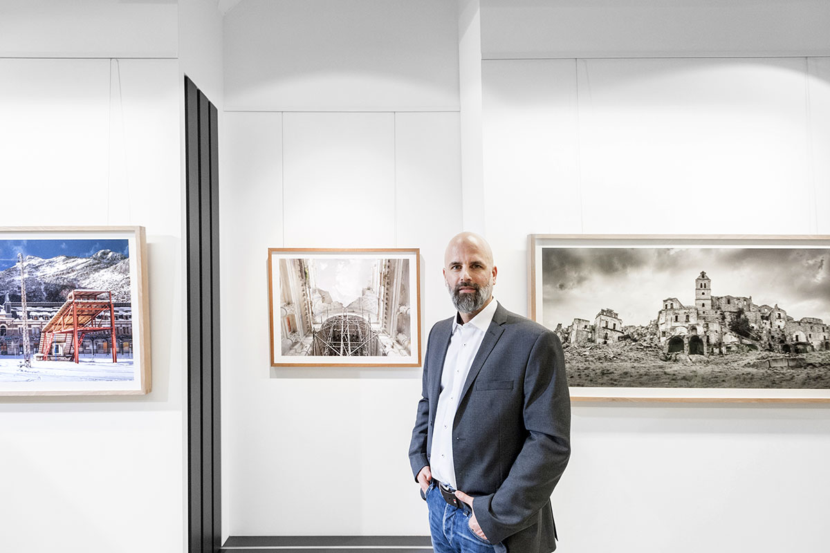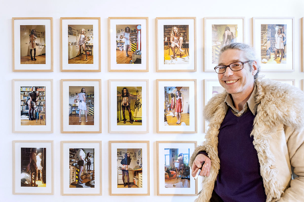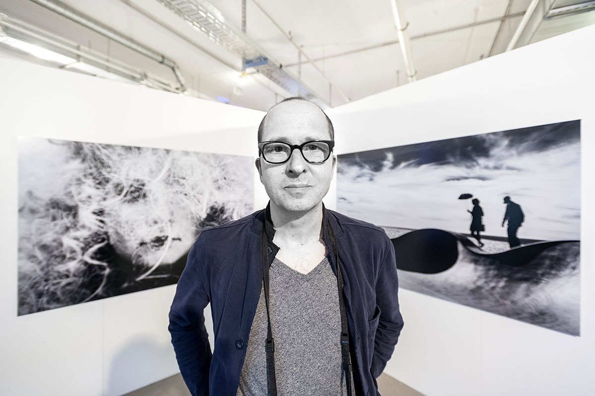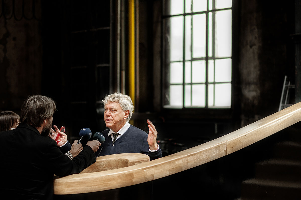Er sucht eher nach dem Künstler mit seinem Werk für seine Bilder. Der dreidimensionale Raum muss auf die zwei Dimensionen der Fotografie übersetzt werden. Das finale Bild in seinem Kopf entsteht auf diese Weise dann immer erst ganz kurz vor dem fotografischen Prozess.