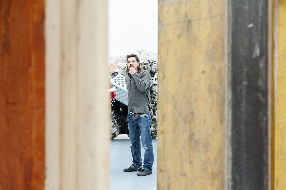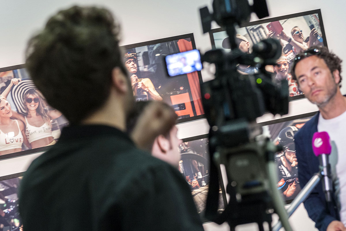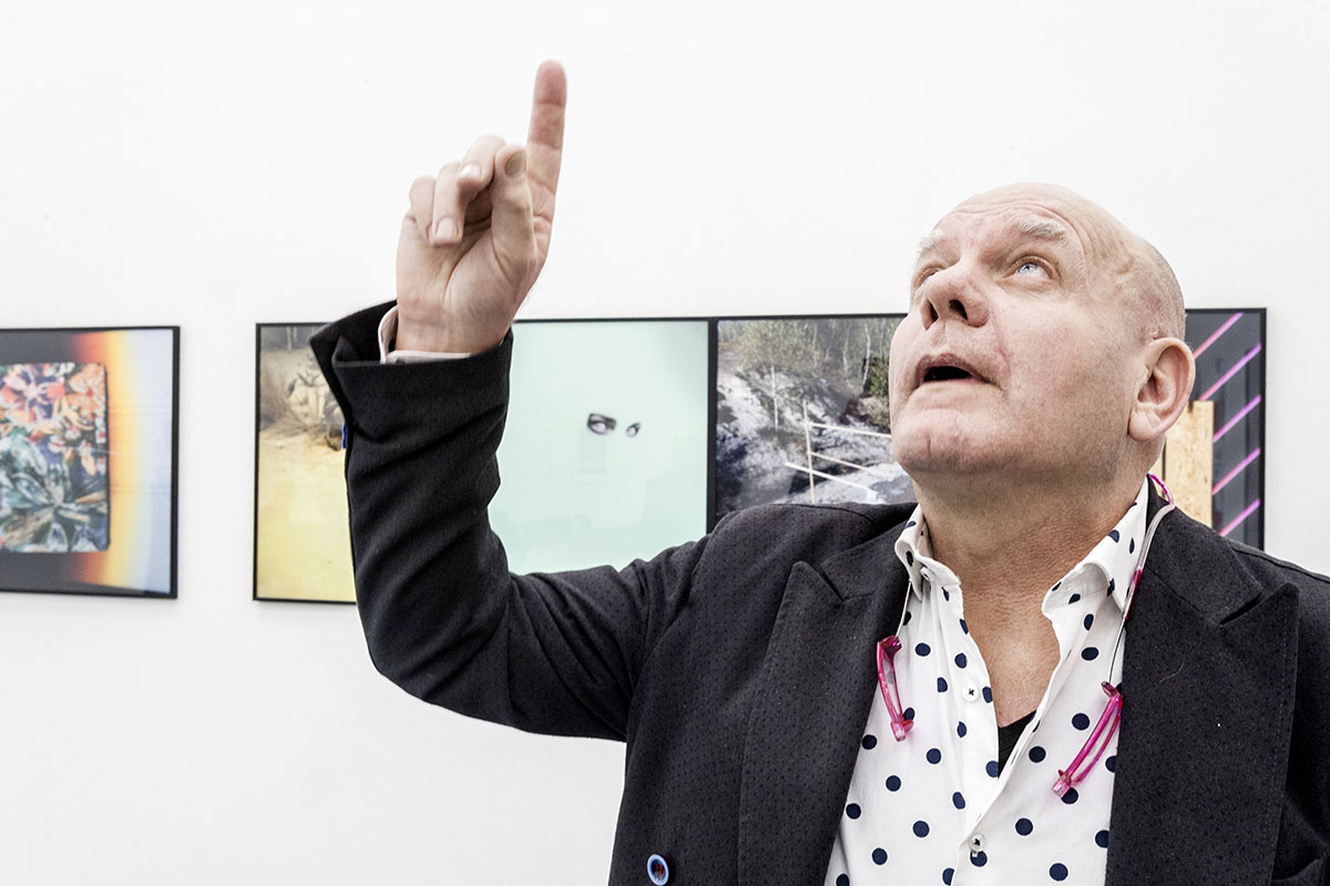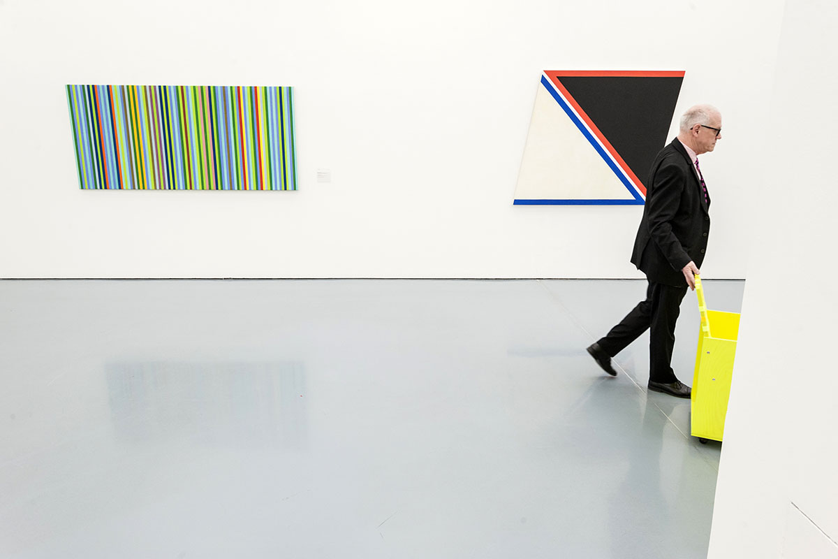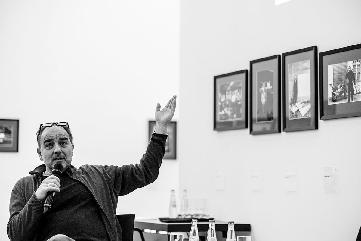 Er sucht eher nach dem Künstler mit seinem Werk für seine Bilder. Der dreidimensionale Raum muss auf die zwei Dimensionen der Fotografie übersetzt werden. Das finale Bild in seinem Kopf entsteht auf diese Weise dann immer erst ganz kurz vor dem fotografischen Prozess.