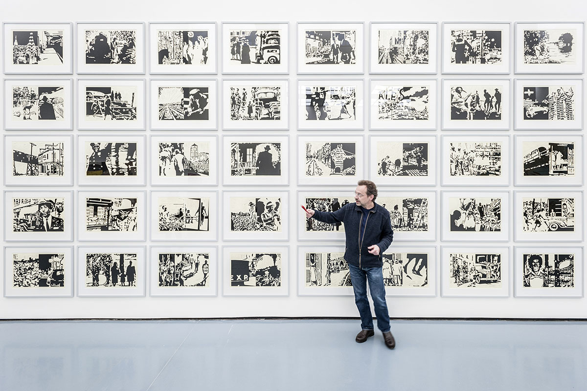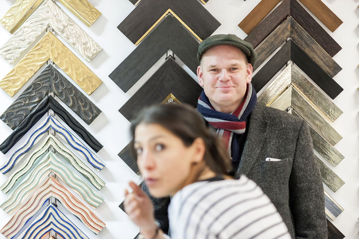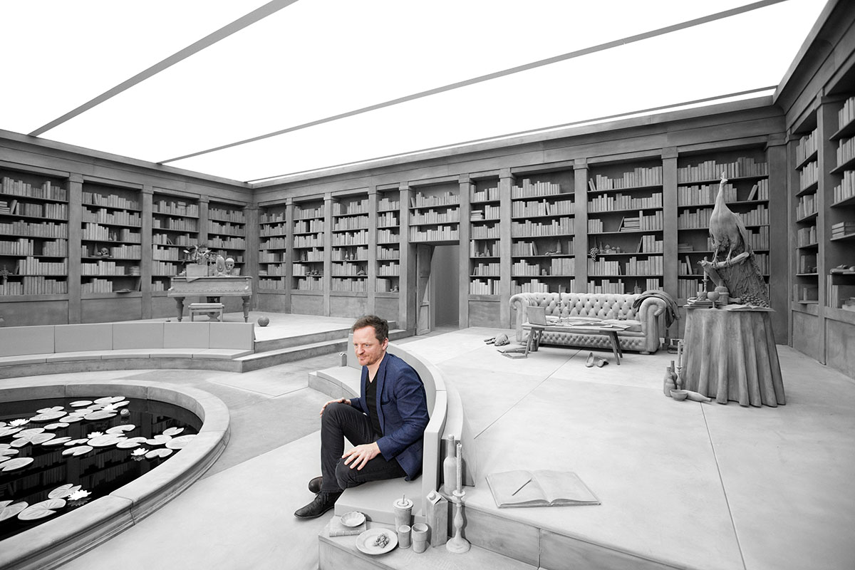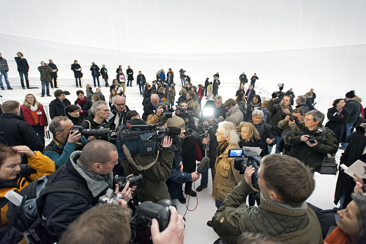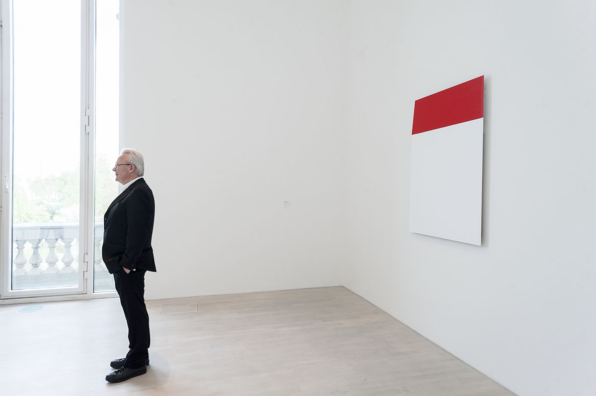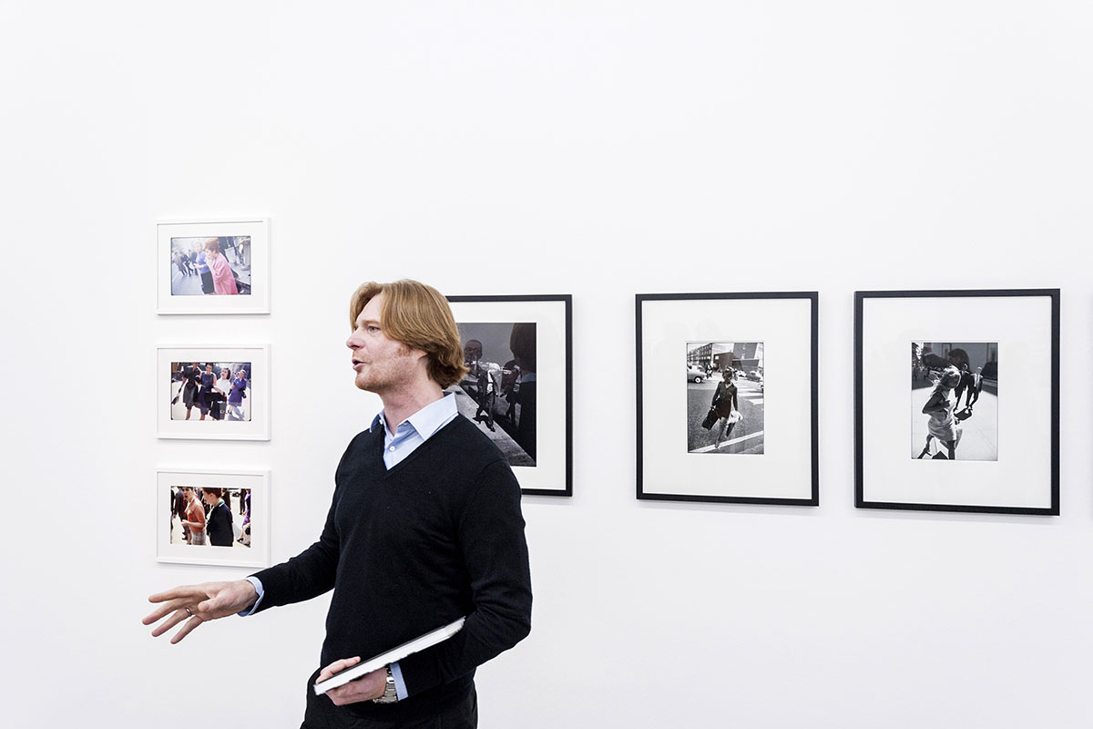 Er sucht eher nach dem Künstler mit seinem Werk für seine Bilder. Der dreidimensionale Raum muss auf die zwei Dimensionen der Fotografie übersetzt werden. Das finale Bild in seinem Kopf entsteht auf diese Weise dann immer erst ganz kurz vor dem fotografischen Prozess.