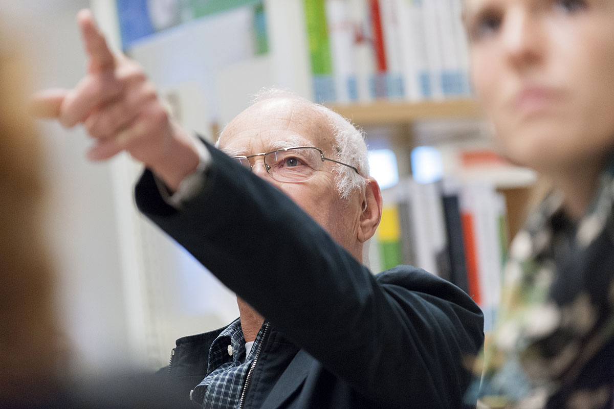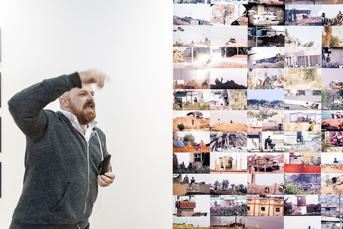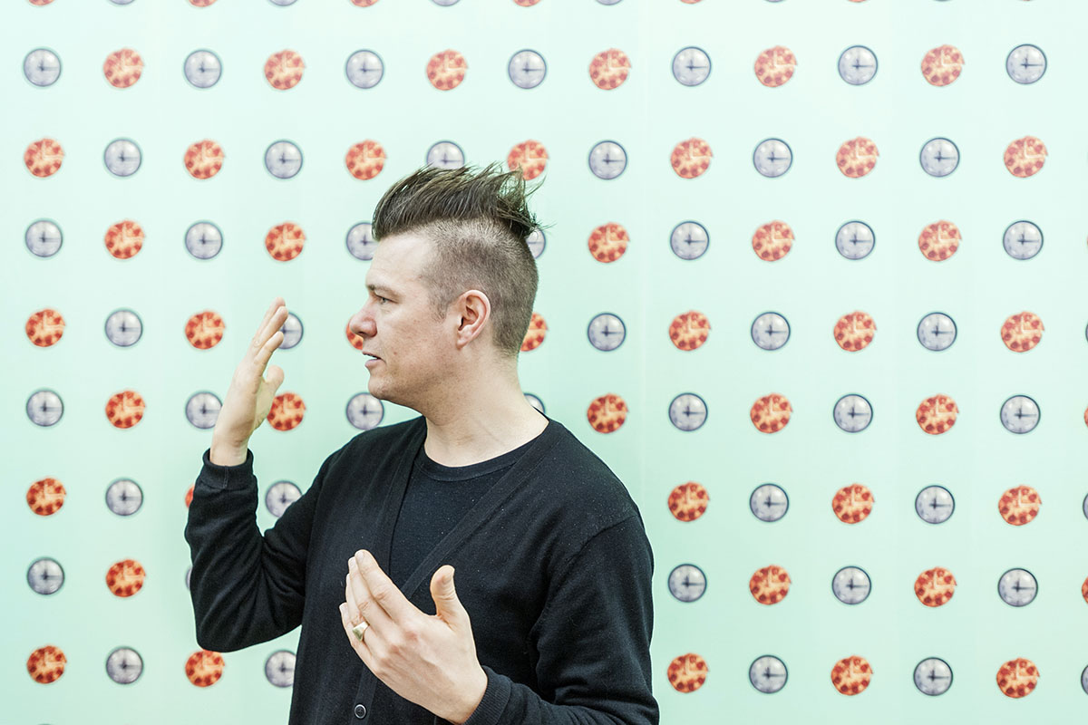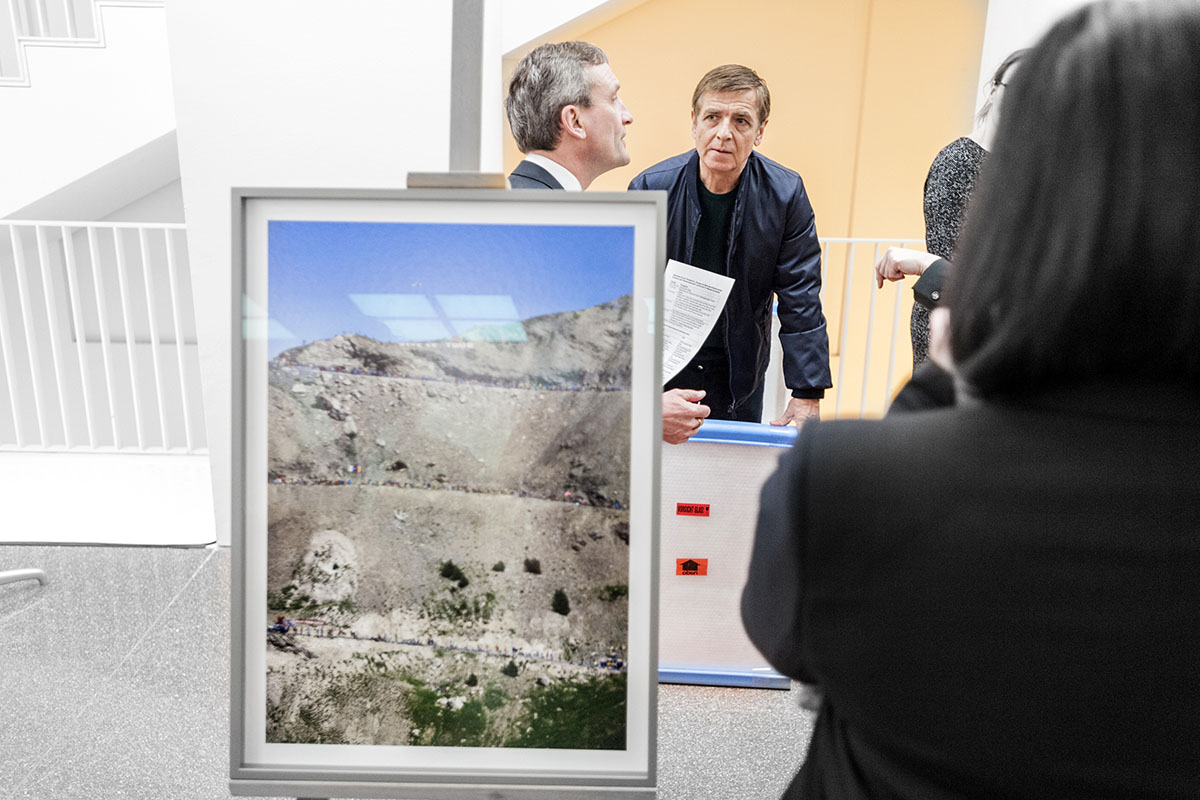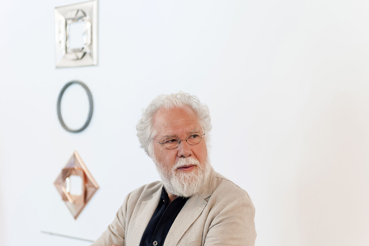 Er sucht eher nach dem Künstler mit seinem Werk für seine Bilder. Der dreidimensionale Raum muss auf die zwei Dimensionen der Fotografie übersetzt werden. Das finale Bild in seinem Kopf entsteht auf diese Weise dann immer erst ganz kurz vor dem fotografischen Prozess.
