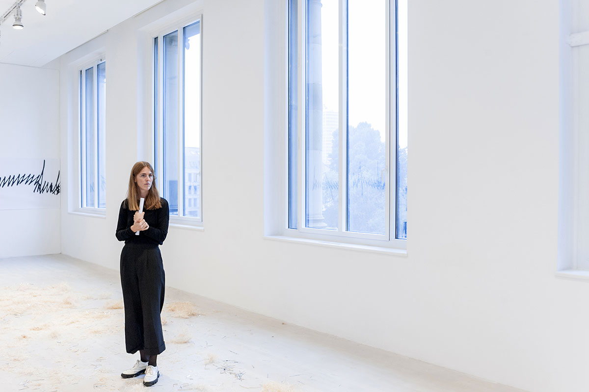 Ohne auf die KUNST|SCHAFFENDEN einzuwirken, lässt Enderlein sie aktiv agieren. Das führt schon mal zu Irritationen auf beiden Seiten der Kamera. Doch häufig entsteht aus diesen Unsicherheiten das etwas andere Foto, das Enderleins Arbeit so außergewöhnlich macht. Ganz selten inszeniert Enderlein seine Modelle. Doch wenn er das tut, positioniert er die Protagonisten meistens statuengleich im Raum. Und auf allen Bildern sehen wir Menschen in Räumen, in großzügigem Umfeld. Somit also doch eine Art Inszenierung, eine Komposition. Auf diese Art erzählen Enderleins Bilder oft mehr, als das Konterfei des KUNST|SCHAFFENDEN alleine verraten könnte.