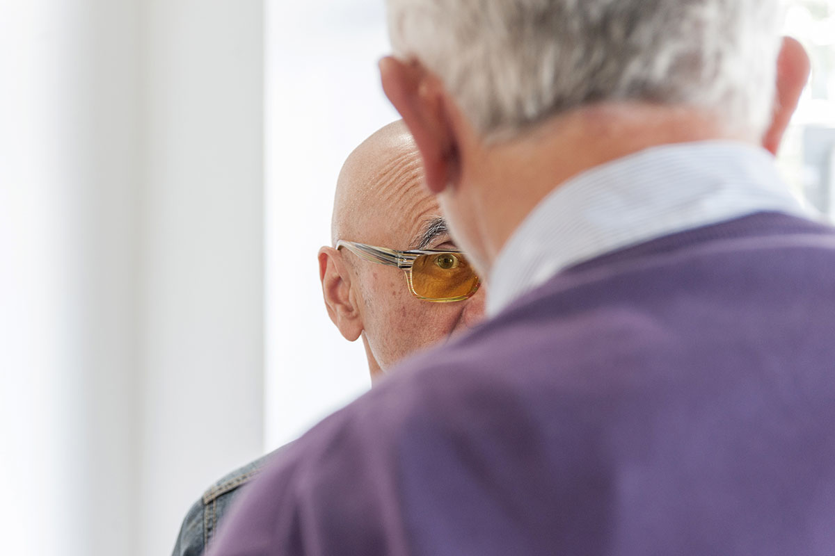 Diese Bild soll seinen Assoziationen entsprechen, die er auf dem Weg zum Treffen im Kopf hat. Er geht sozusagen nie zu einer Begegnung, ohne seine „Hausaufgaben“ gemacht zu haben. Der Raum, in dem er die Protagonisten trifft, ist zunächst das formale Umfeld. Manchmal sind es Bilder, Plastiken, Fotografien oder andere Gegenstände, die im Bezug zu dem jeweiligen KUNST|SCHAFFENDEN stehen. Diese möchte er dann in die Bildkomposition einbeziehen.